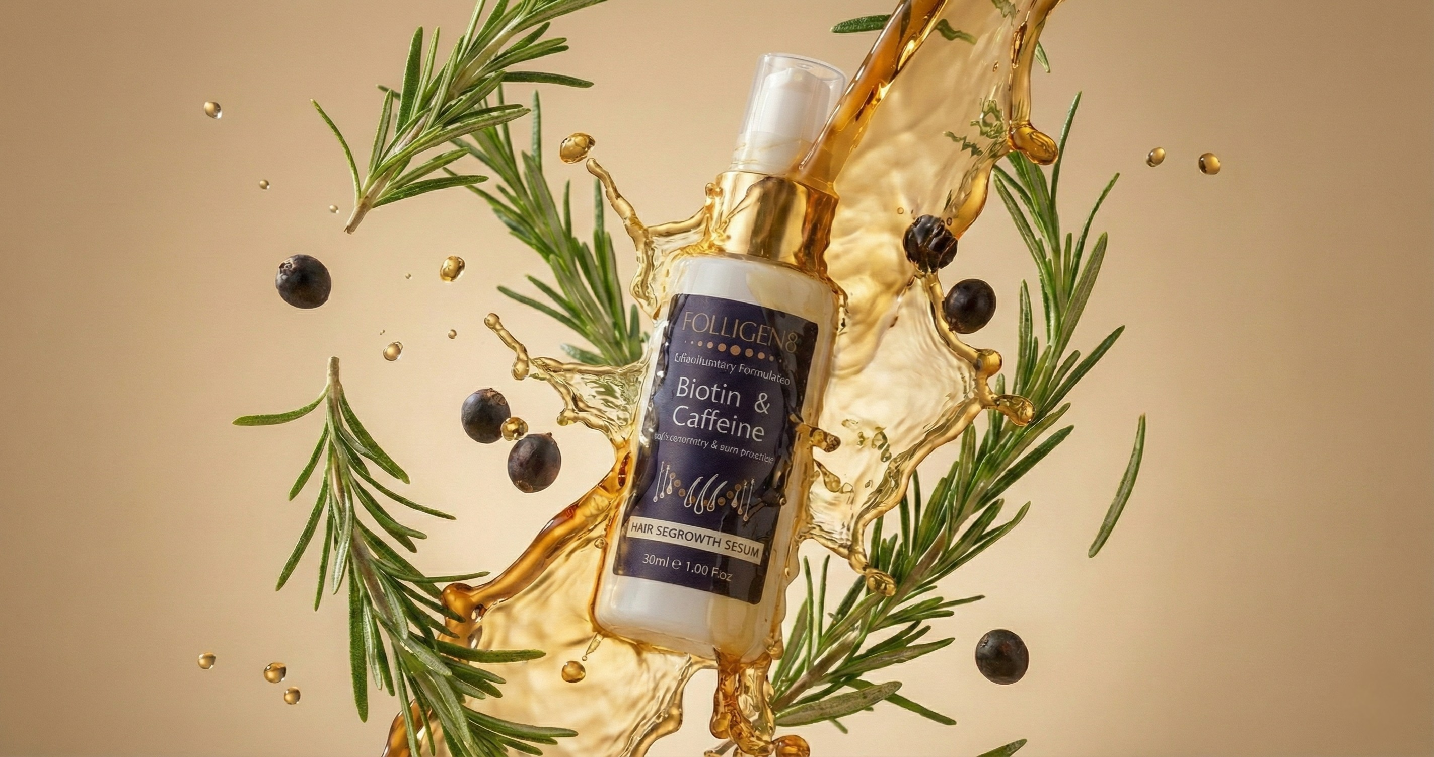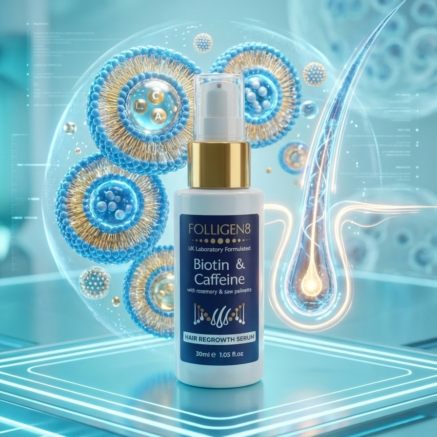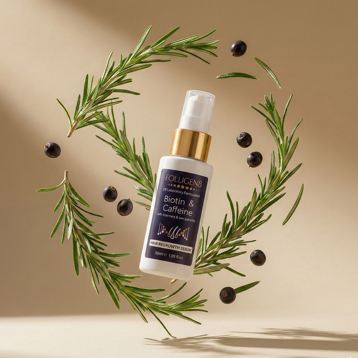 Saw Palmetto combined with other key performance ingredients including Biotin, Rosemary Extract, and Caffeine, and formulated in a UK laboratory, Folligen8 is an advanced multi-active hair serum engineered to support scalp health, strengthen hair fibers, and optimize the hair growth environment.